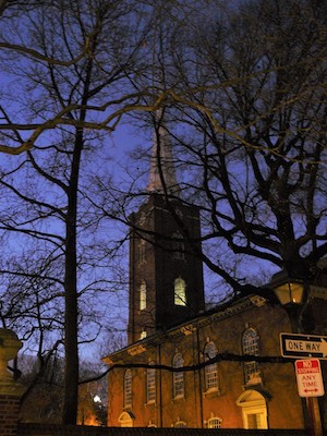 Hold mouse here for more info!The church, one of the best-preserved and best-located for evoking the 18th century atmosphere I value so highly, contains the baptismal font used for the baptism of George Washington.