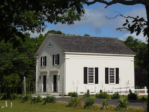 Hold mouse here for more info!For some years, this building was across the road, in use as a barn. It’s been restored to its original foundations, and now presents quite well as a survival from the 18th century. Compare its appearance to that of Walpole, just a few miles away.