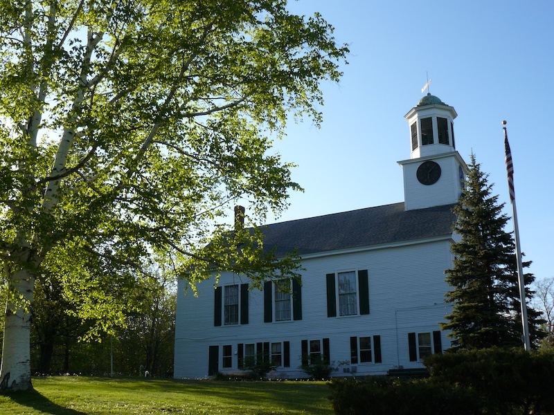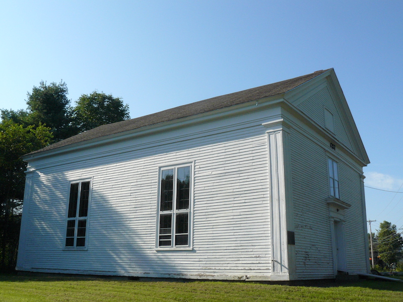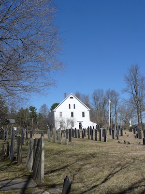 Hold mouse here for more info!While not as isolated as some of the most colonial-seeming buildings, the MH in Jaffrey has a suitable setting suggestive of the 18th century.