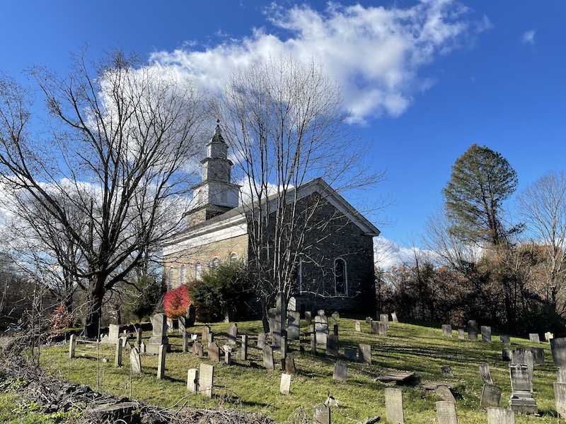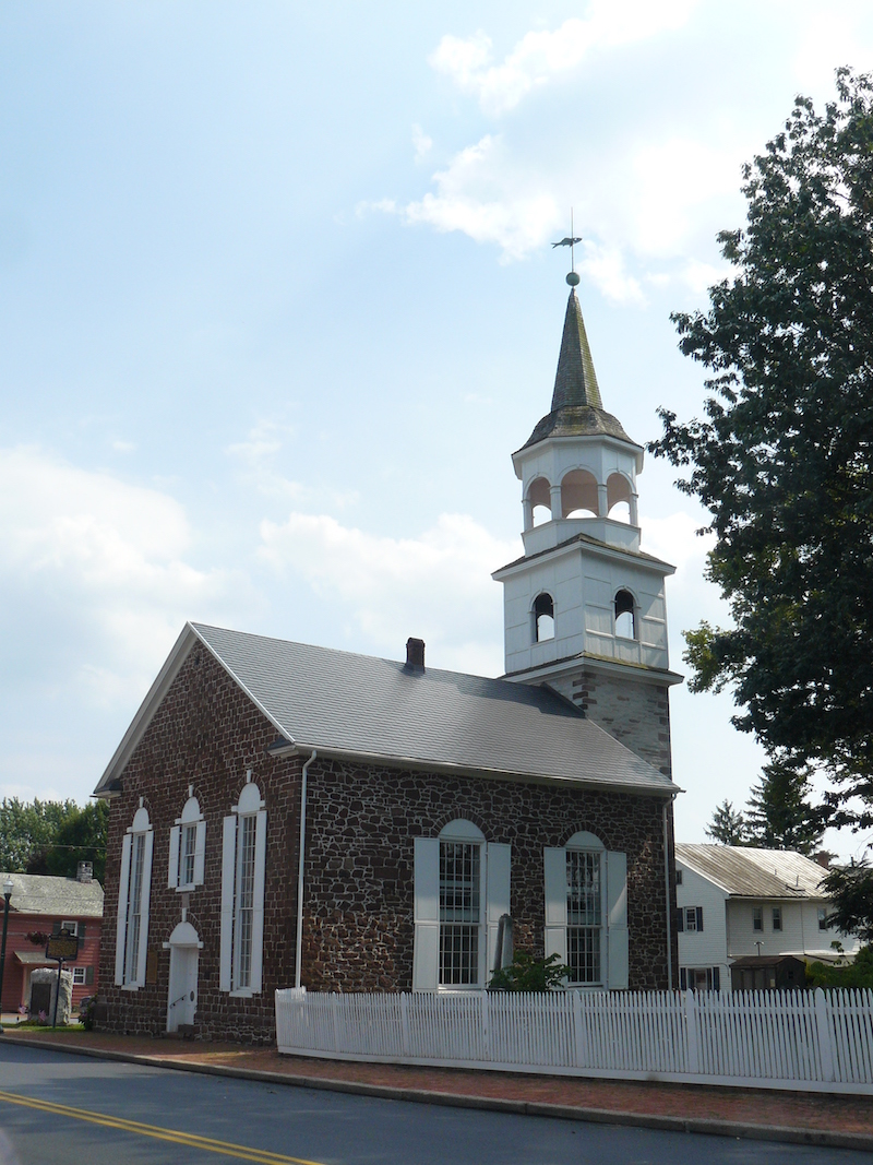 Hold mouse here for more info!Augustus is the parent church of all other Lutheran Churches in America. One mark, created on the 250th anniversary of this church’s foundation, is a walkway from the parking area that is made of slabs of engraved stones from the many first-generation Lutheran churches its parishioner-missionaries established. Among them are all the other Lutheran CHoWs on this website.