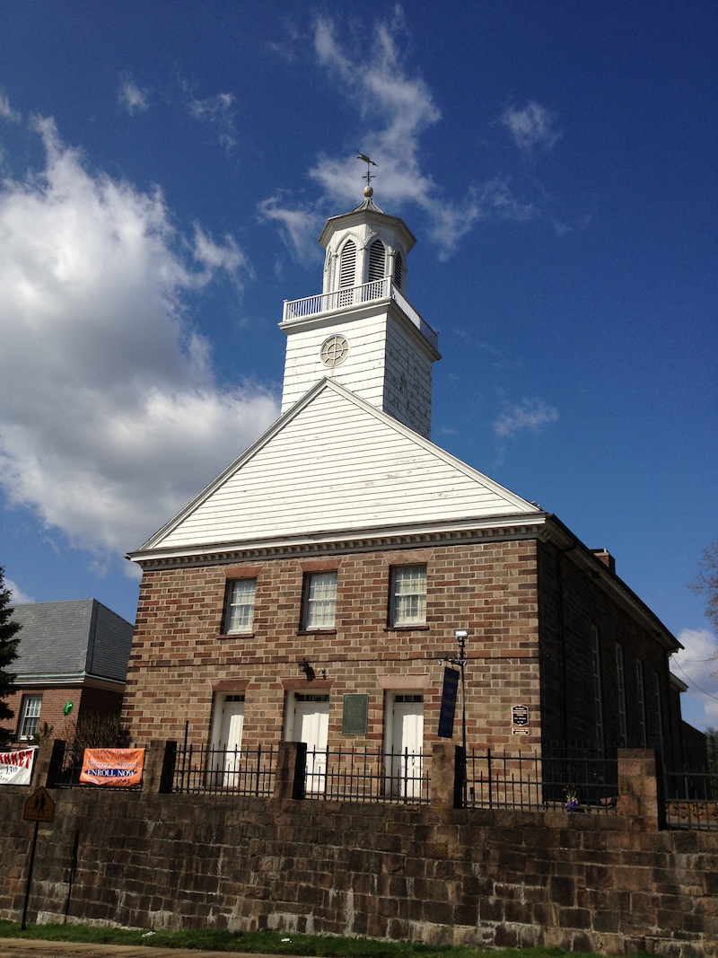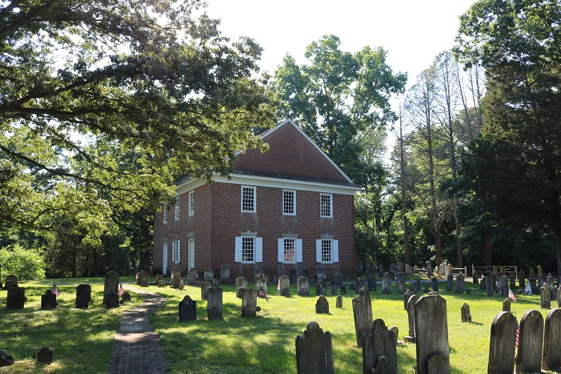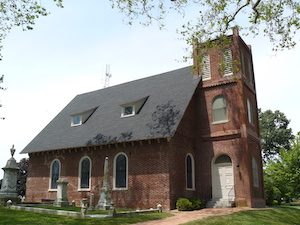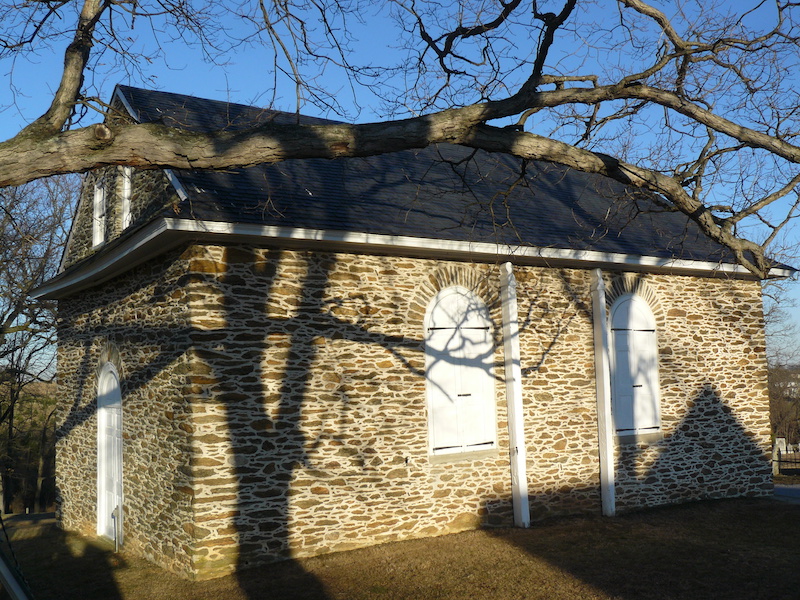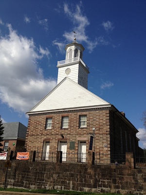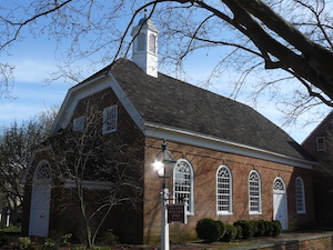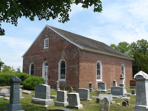 Hold mouse here for more info!Its location in a true village in southern (rural) New Jersey gives this church a distinct colonial-era edge. The extensive property includes some very large old trees, enhancing the colonial atmosphere.