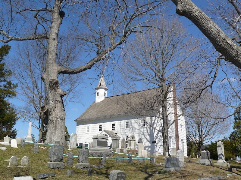 Hold mouse here for more info!Even in the nation’s most densely populated state, some locations still seem from another time. This church has sufficient surrounding land to produce that effect.