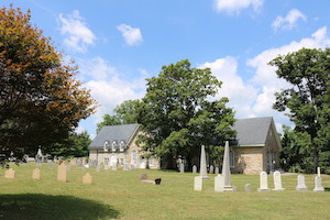 Hold mouse here for more info!This stone church is at the edge of a really large rural cemetery, and if one has a quiet traffic day, one can easily see this as the residents saw it in the 18th century.