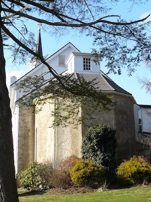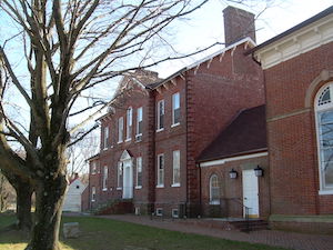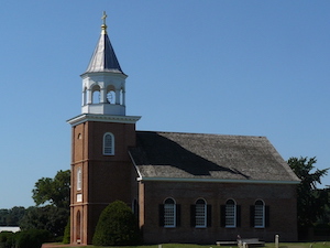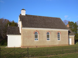 Hold mouse here for more info!While this is one of the most unusual religious buildings remaining from the 18th century, it’s also now a private home, and is not open to the public. Priests’ Mass Houses existed because for some decades after the settlement of Maryland (1634) the Roman Catholic church was not permitted to own land/property, so priests had to build houses with large enough central chambers for holding Mass. This may be the only one remaining from that era.